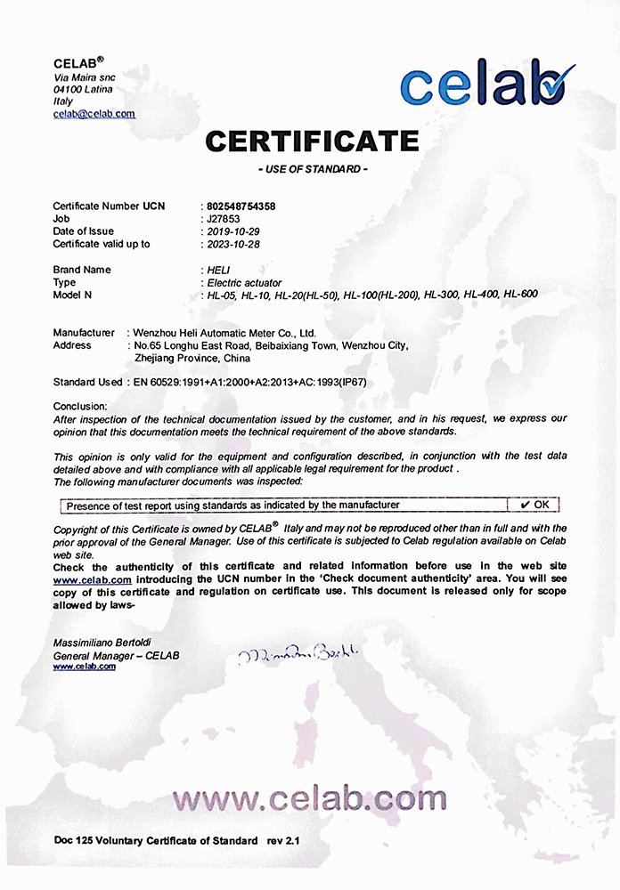 證書(shū)HL-IP67(CELAB)