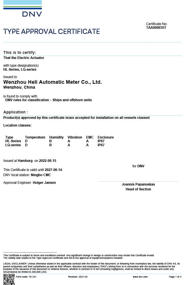 溫州合力自動(dòng)化DNV船級(jí)社認(rèn)證
